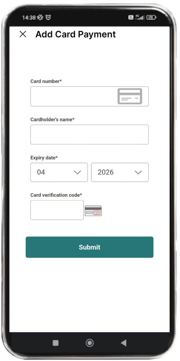 5. Add a payment card (you can access your payment methods also from the menu in the top left corner)